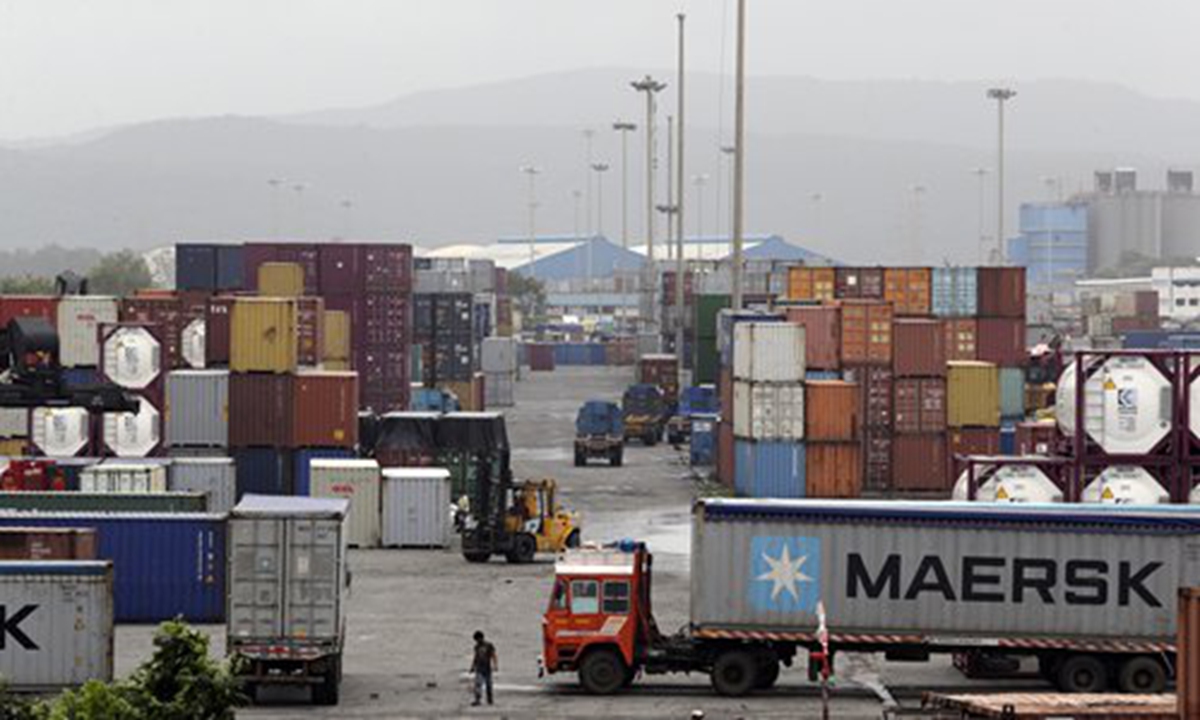 Containers are piled up at a terminal at the Jawaharlal Nehru Port Trust in Mumbai, India. File photo: ICIndia’s Commerce and Industry Minister Piyush Goyal said on Saturday that he has started talks with the EU’s trade commissioner over a free trade agreement (FTA).